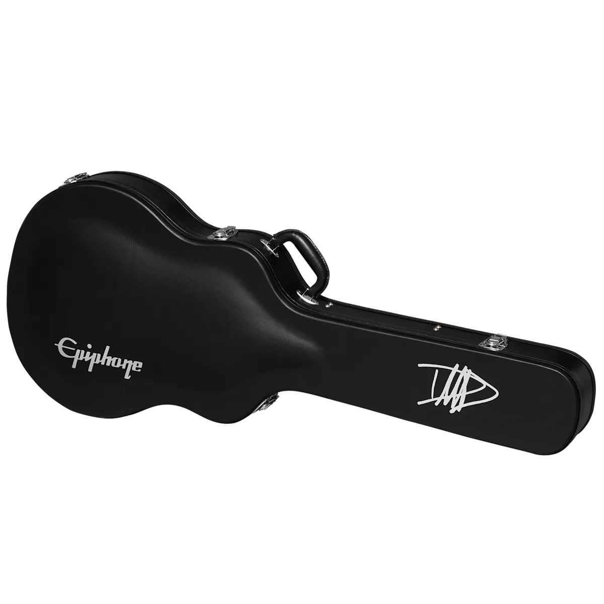 Dave Grohl là một huyền thoại nhạc rock thay thế không cần giới thiệu. Là người dùng Gibson lâu năm, những cây đàn guitar Gibson signature trước đây của ông vẫn cực kỳ phổ biến và có giá cao trên thị trường đồ cũ — khi bạn có thể tìm thấy một cây. Giờ đây, Epiphone vô cùng tự hào khi một lần nữa hợp tác với Gibson Custom để phát hành Dave Grohl DG-335. Đàn có sự kết hợp giữa các tính năng của mẫu ES-335 và Trini Lopez mà Dave yêu cầu và người hâm mộ mong đợi, bao gồm thân đàn ES™ bán rỗng với các lỗ thoát âm hình thoi, cần đàn bằng gỗ gụ nguyên khối có hình elip, đầu cần đàn theo phong cách Trini Lopez với bộ khóa Grover® Mini Rotomatic®, bàn phím gỗ nguyệt quế và khảm kim cương tách đôi. Các bộ phận thu là mẫu Gibson USA Burstbucker™ mà Dave ưa thích, với Burstbucker 2 ở cần đàn và Burstbucker 3 ở vị trí cầu đàn. Chúng được nối với các biến trở CTS®, tụ điện Mallory™ và công tắc bật tắt 3 chiều Switchcraft® cùng giắc cắm đầu ra 1/4”. Đây là một trong những mẫu đàn được yêu cầu nhiều nhất trong lịch sử của Epiphone. Một hộp cứng Epiphone Dave Grohl cũng được bao gồm.
