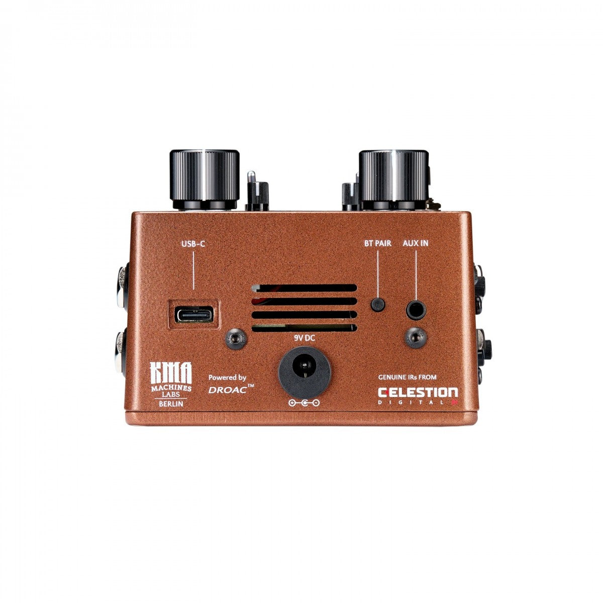 Các tùy chọn kết nối đa dạng bao gồm đầu ra XLR DI âm thanh nổi và đầu ra TRS cân bằng. Cổng USB C để tải Phản hồi xung của người dùng và cập nhật phần mềm