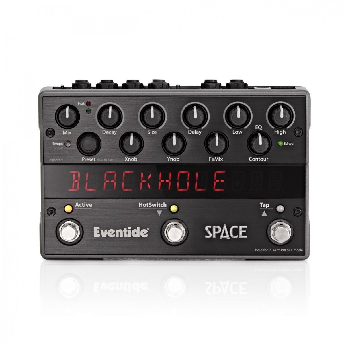 Eventide Space trực quan và linh hoạt, có 12 hiệu ứng hồi âm, mỗi hiệu ứng đều có đặc điểm riêng, bao gồm Room, Plate, Hall, Shimmer, Reverse Reverb, ModEchoVerb, DualVerb, MangledVerb, DynaVerb và TremoloVerb. Các tùy chọn điều khiển đa dạng này kết hợp với âm sắc chất lượng phòng thu và âm thanh trong trẻo như pha lê khiến bàn đạp này trở thành bàn đạp duy nhất bạn cần. Cung cấp nhiều thông số có thể điều chỉnh cho phép bạn chỉnh sửa cài đặt trước, bàn đạp này cho phép bạn chỉnh sửa bản phối, thời gian suy giảm, kích thước của hồi âm, độ trễ và EQ thấp/cao để tạo ra nhiều loại âm thanh hồi âm. Với 10 núm điều khiển để điều khiển tức thời theo thời gian thực các thông số đã chọn, Eventide Space lý tưởng cho các ứng dụng âm thanh từ biểu diễn đến sử dụng tại nhà và phòng thu.